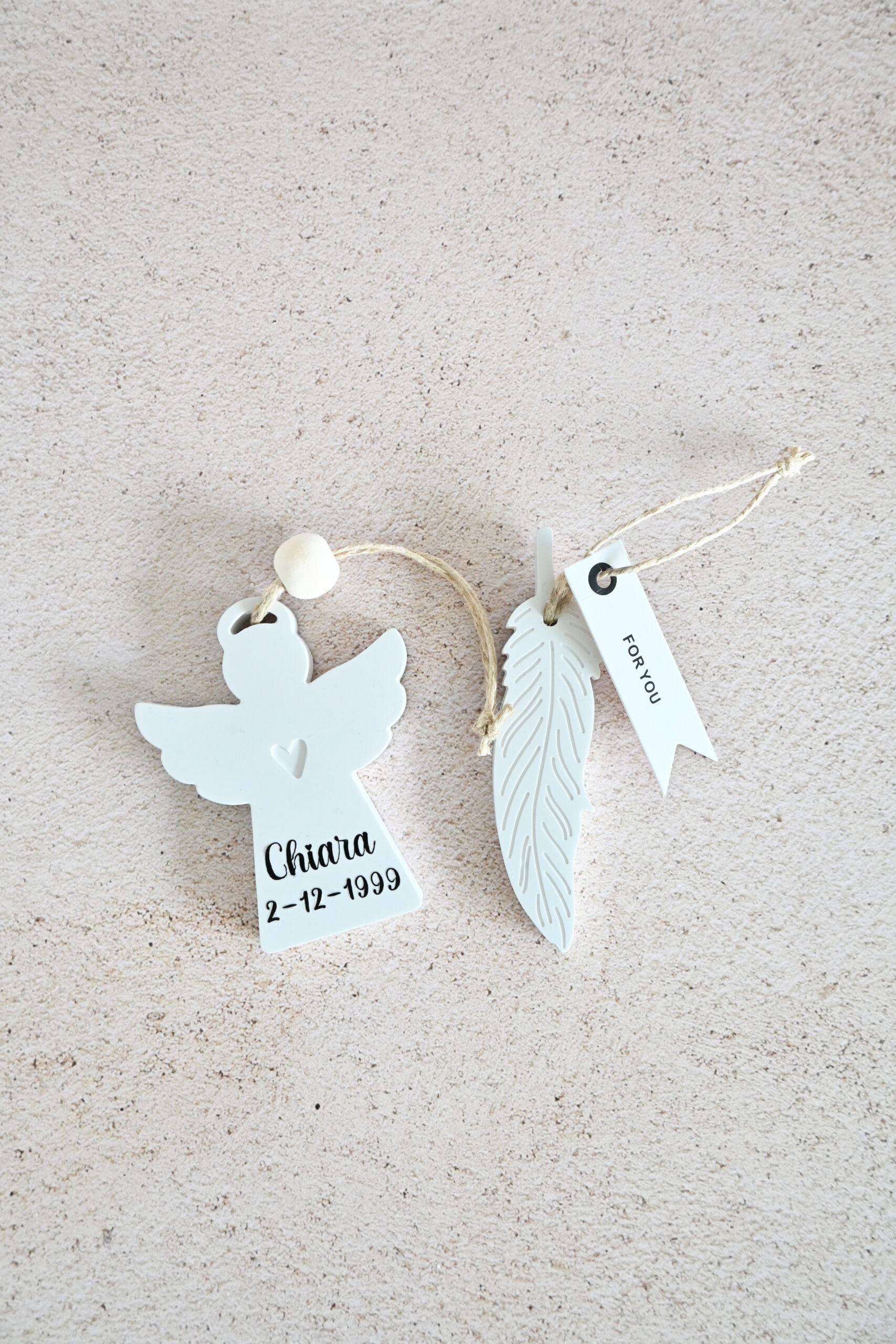 Je kan dit engeltje personaliseren met naam en/of datum, stuur de gewenste tekst door via opmerkingen.