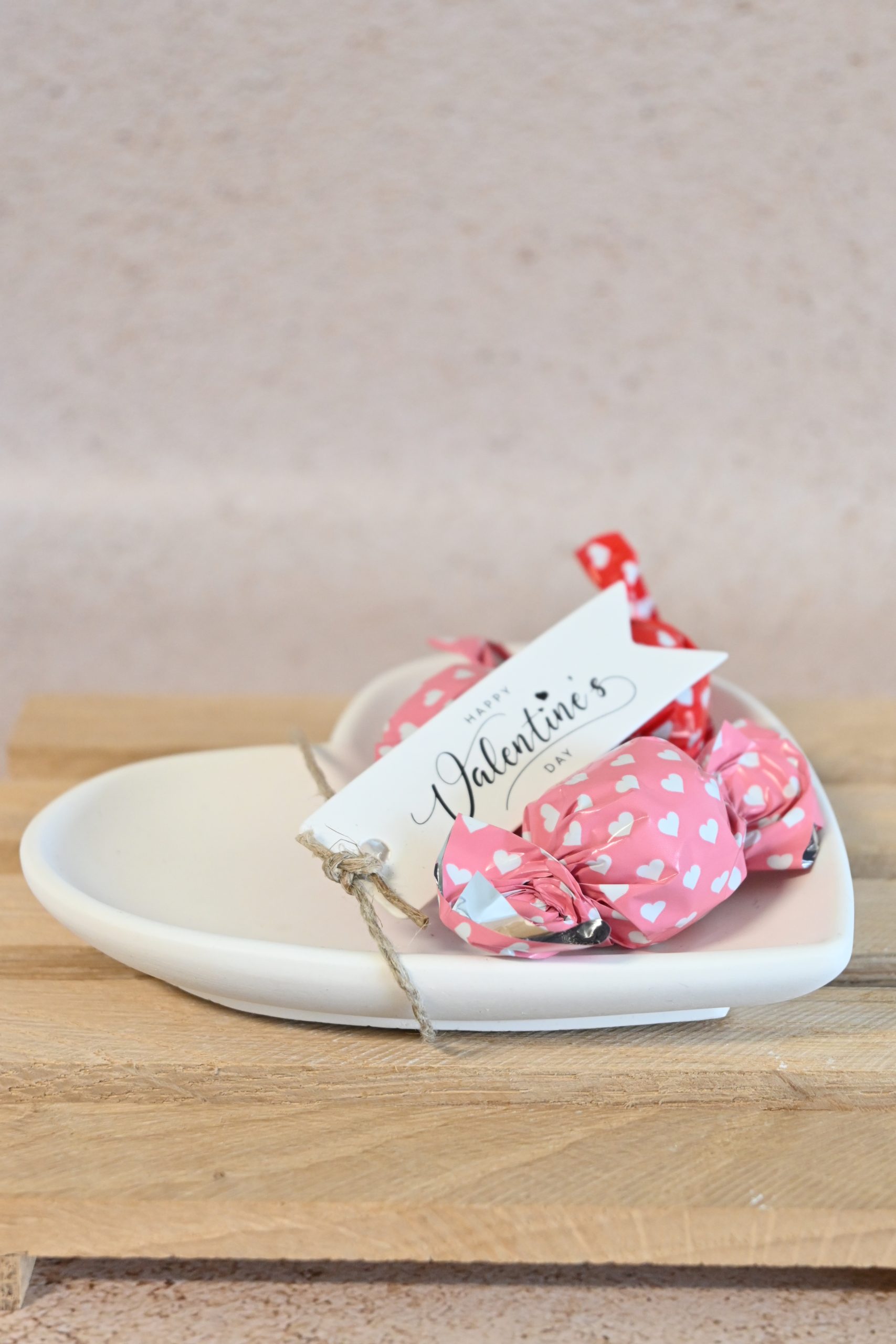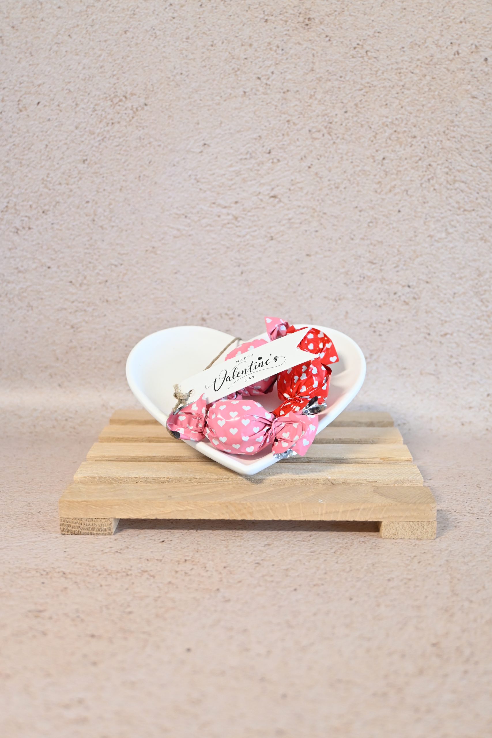 Verwen je Valentijn met een hartenschaaltje vol heerlijke chocolaatjes. Een zoet gebaar recht uit het hart om de liefde te vieren! 🍫❤️