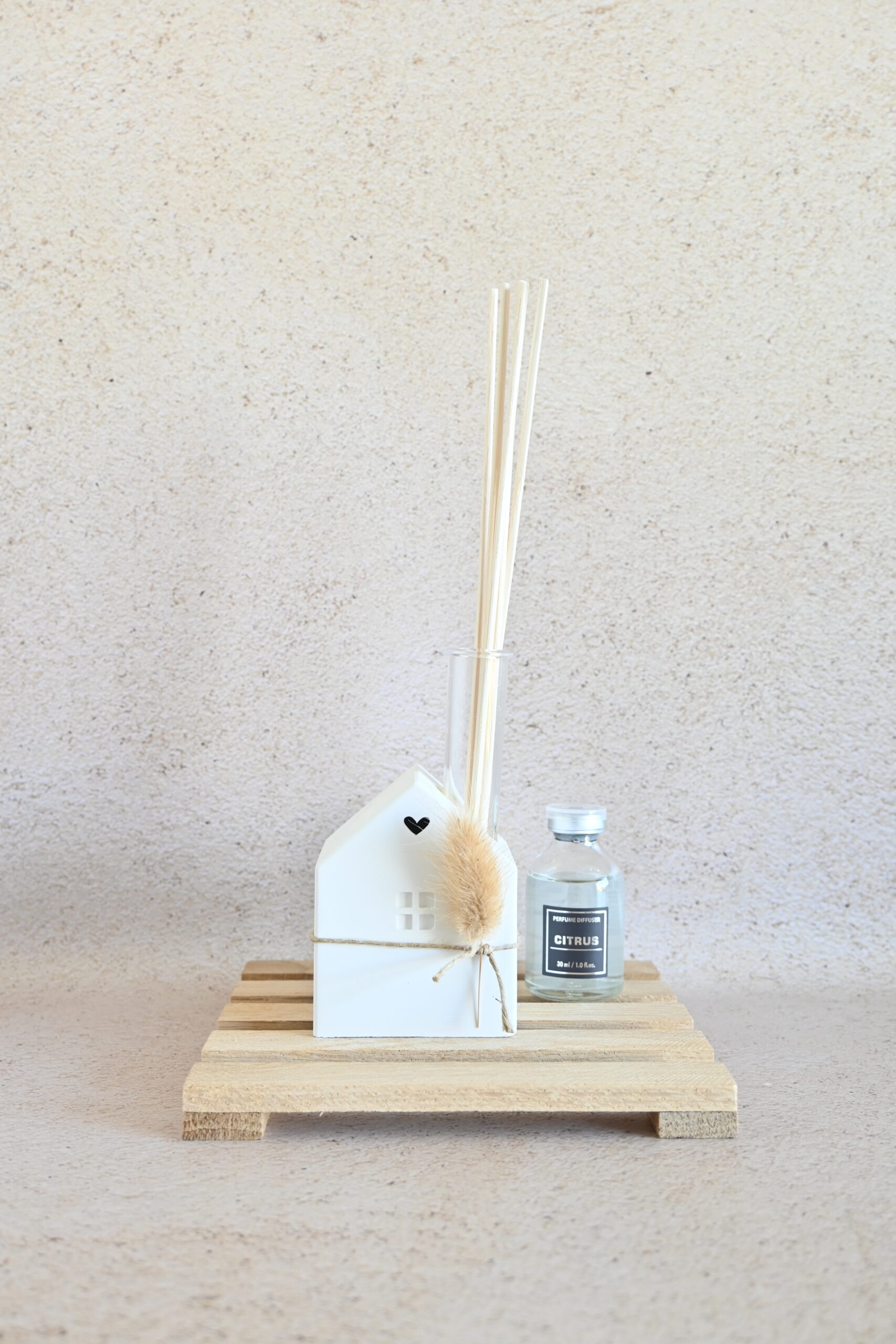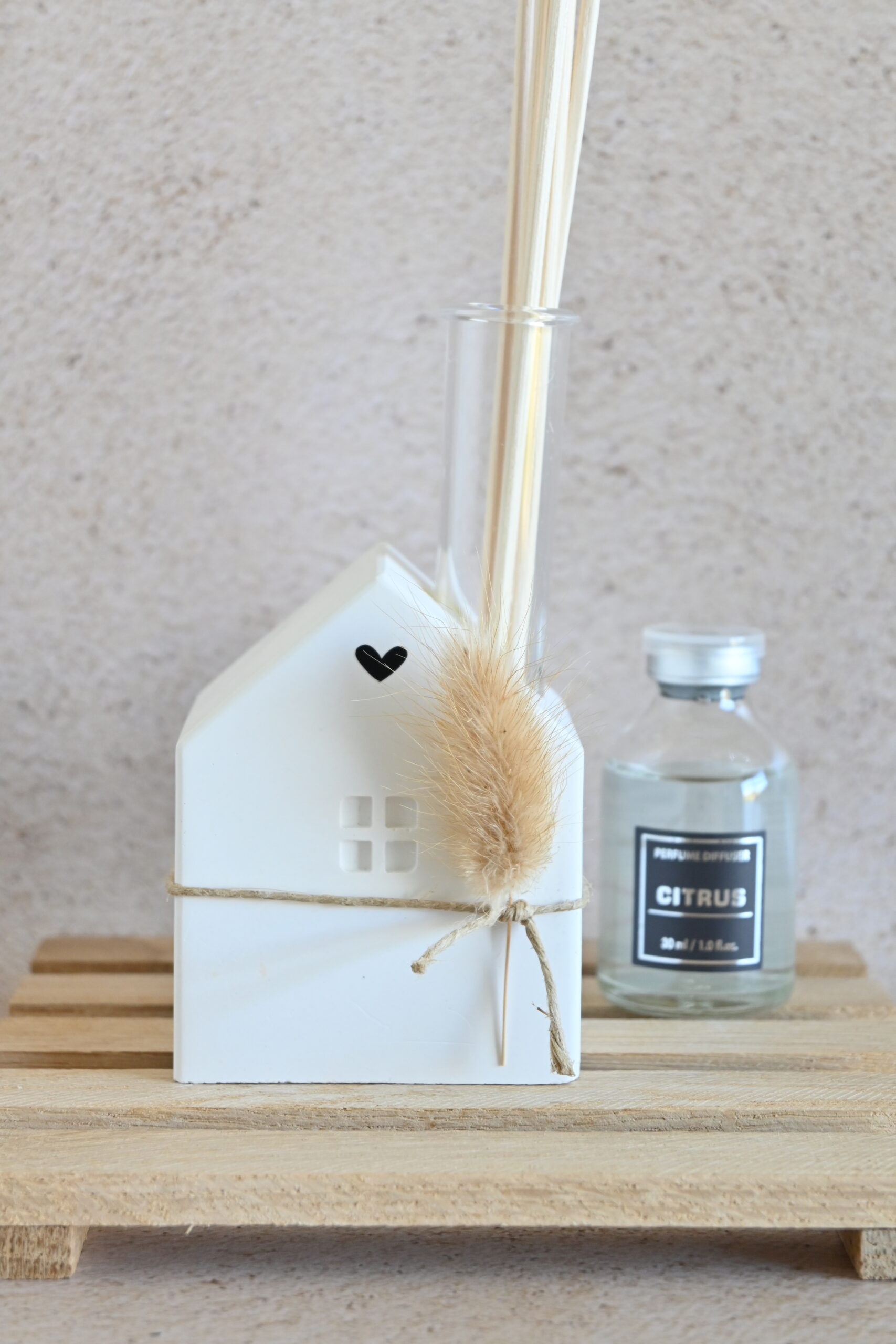 Een stijlvol huisje met geurstokjes 🏠. Heerlijk geurend en decoratief tegelijk, dit detail geeft je interieur frisheid en karakter.