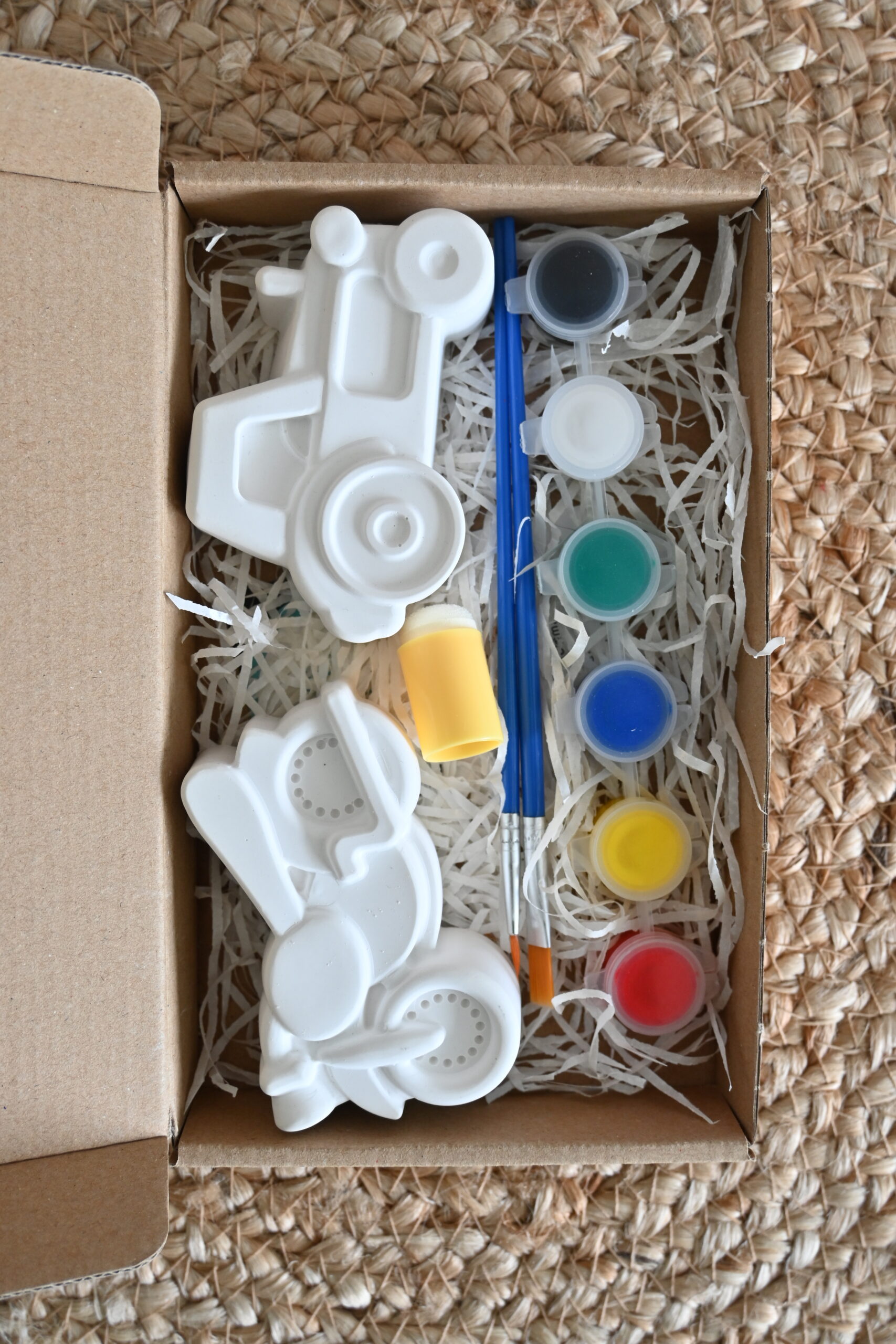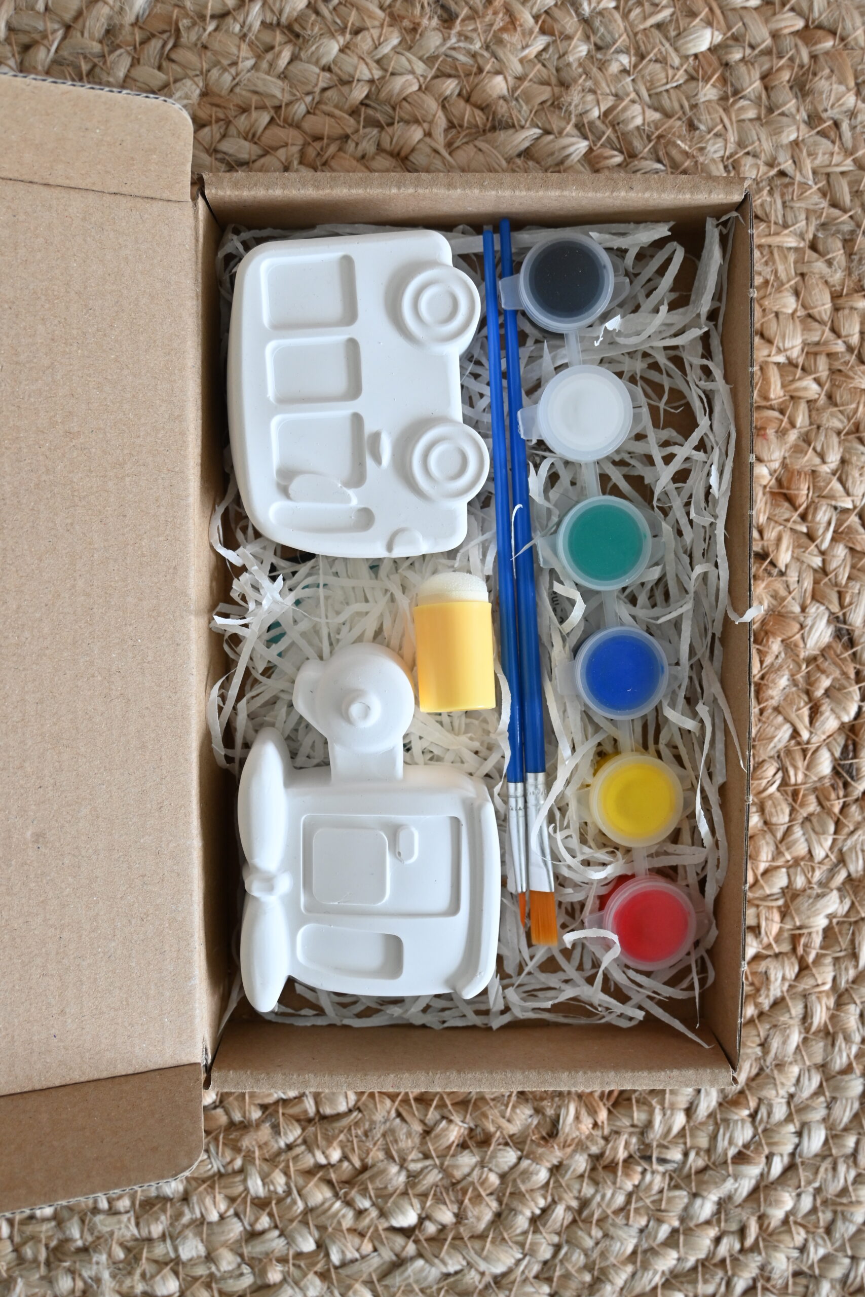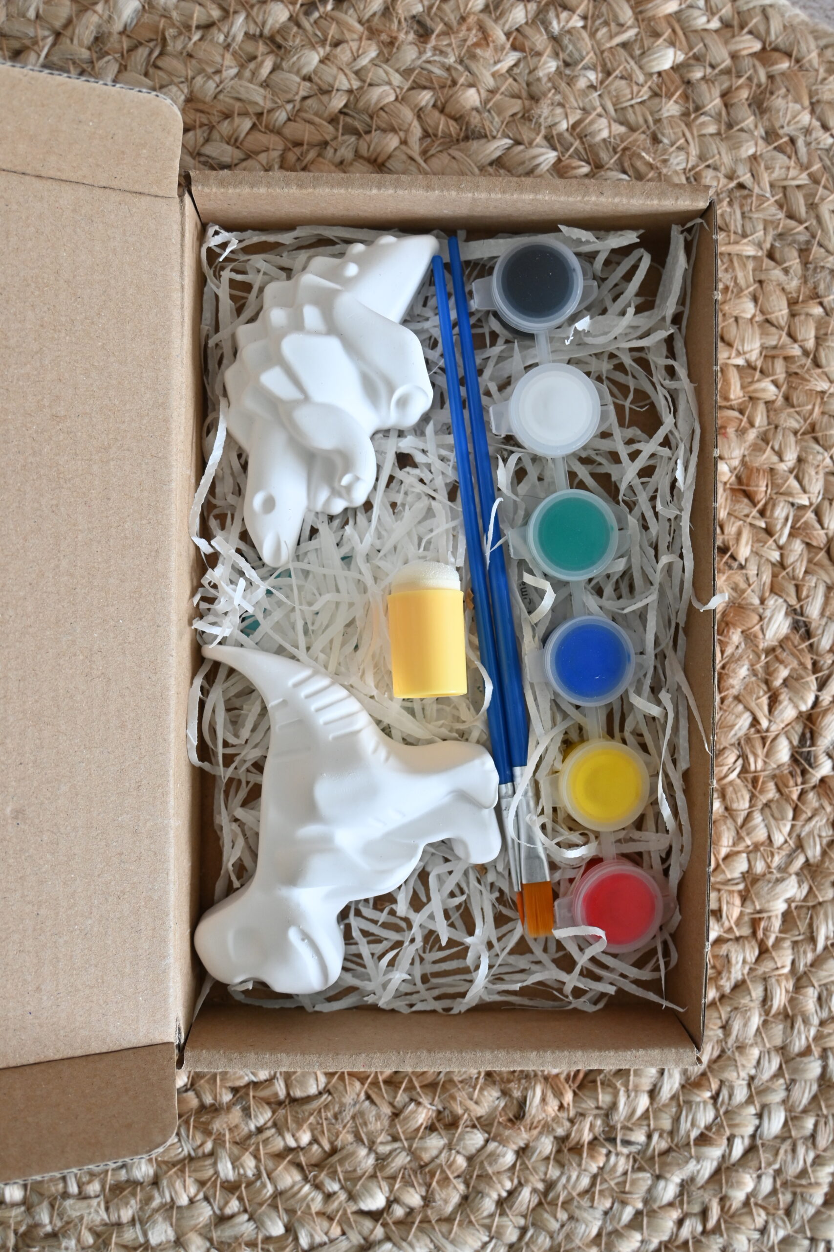 Inclusief twee figuurtjes, verfpotjes, twee penselen en vingersponsje
