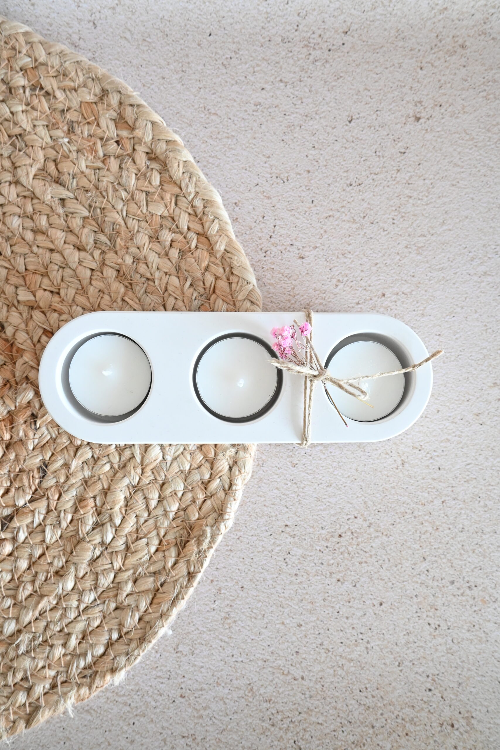 Afmetingen theelichthouder: breedte 18 cm – hoogte 2,5 cm