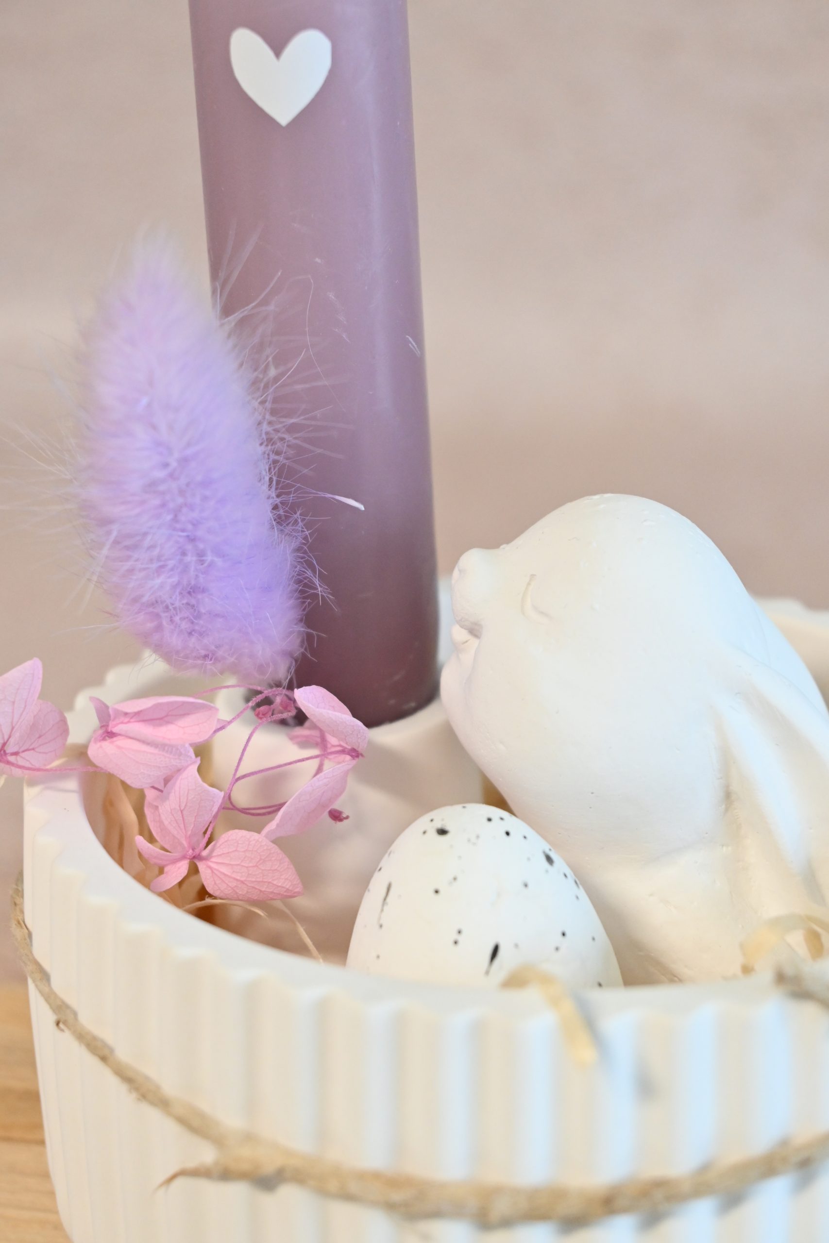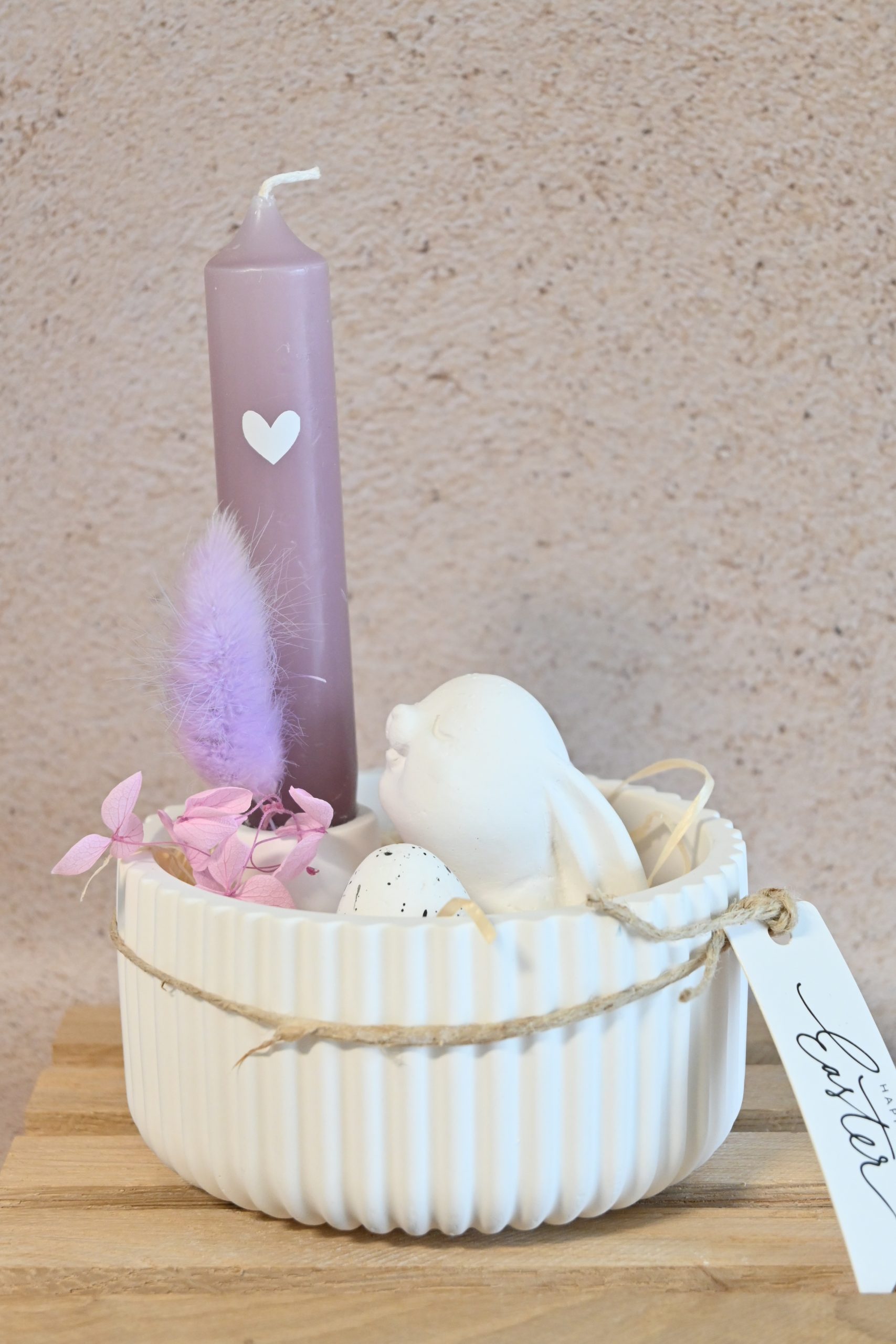 Dit gezellige paassetje, met een Snuffeltje en een sfeervolle kaarsenhouder in een elegant kommetje, zorgt voor een knusse lentesfeer. 🌼🪺