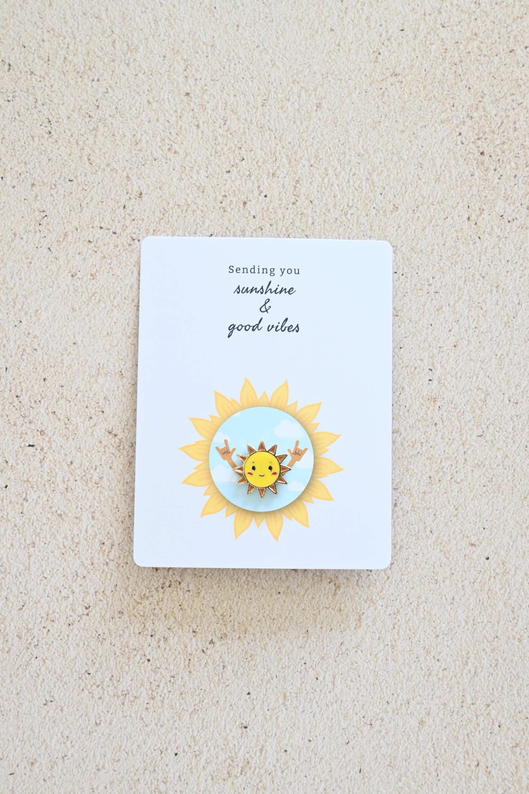 Stuur een zonnestraal in een envelop ☀️. Met deze vrolijke pin breng je instant goede vibes en warmte bij wie het even nodig heeft.